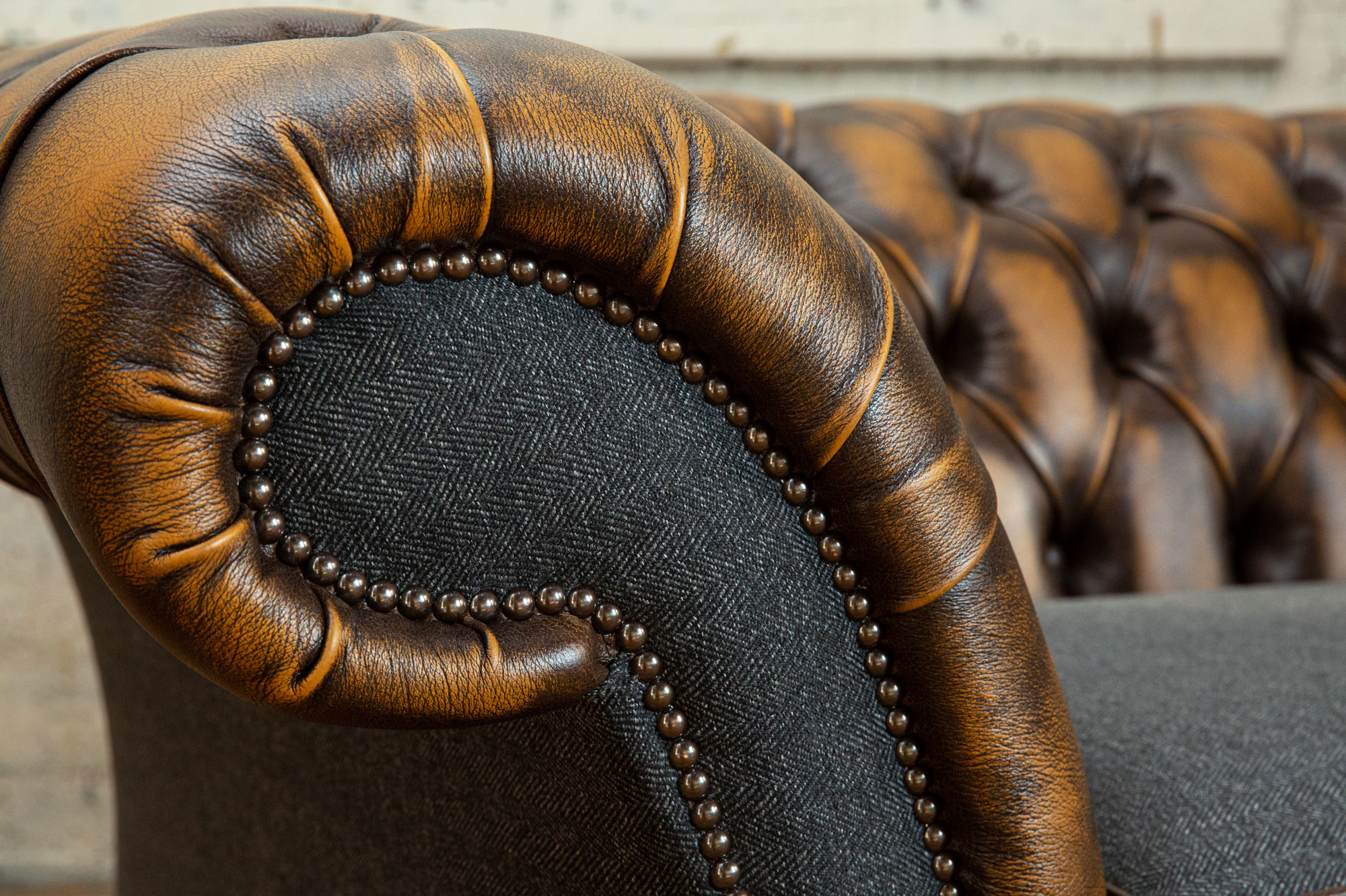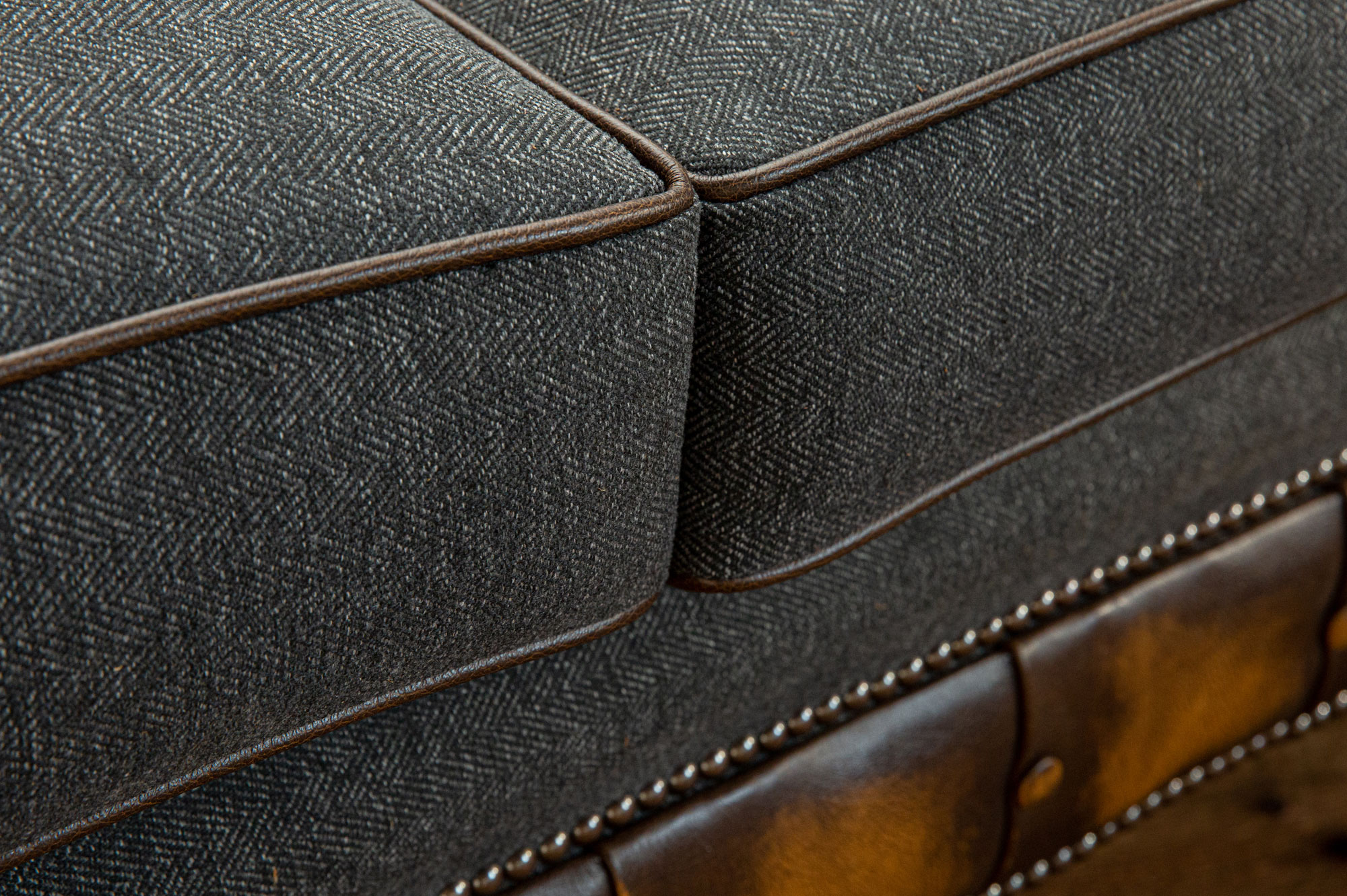 Distinctive leather detailing to the arms and piping adds depth and character, allowing the design to be finished in either contrasting leathers for a bold statement, or complementary tones for a more understated, cohesive look. This considered interplay of materials elevates the Chatsworth beyond the traditional Chesterfield aesthetic.