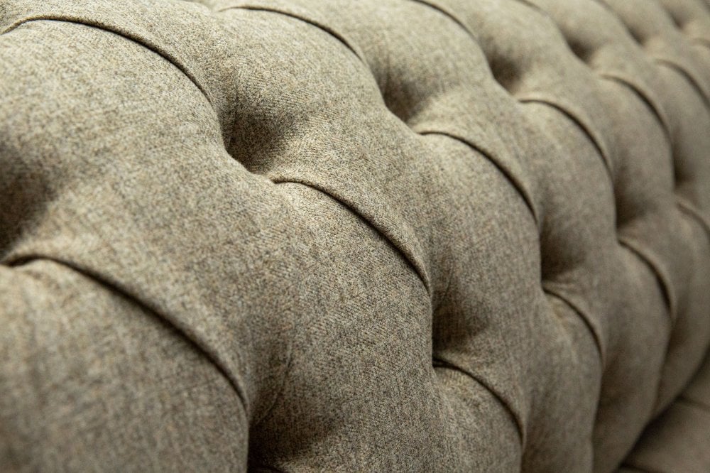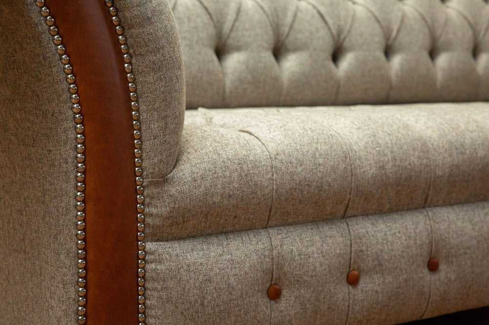 Subtle leather facing and button detailing introduce a refined contrast that enhances texture and visual depth, elevating the traditional fabric upholstery with a touch of rich, artisanal character. This thoughtful interplay of materials gives the Sussex an elegant versatility – perfectly at home in both traditional and contemporary interiors.