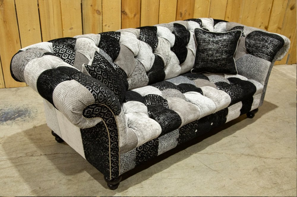 The Hereford Patchwork Chesterfield Suite is inspired by the timeless charm of Herefordshire’s historic towns and picturesque villages. Drawing on the region’s iconic timber-framed architecture, this refined collection interprets monochromatic heritage design through a contemporary lense, creating furniture that feels both grounded and modern.