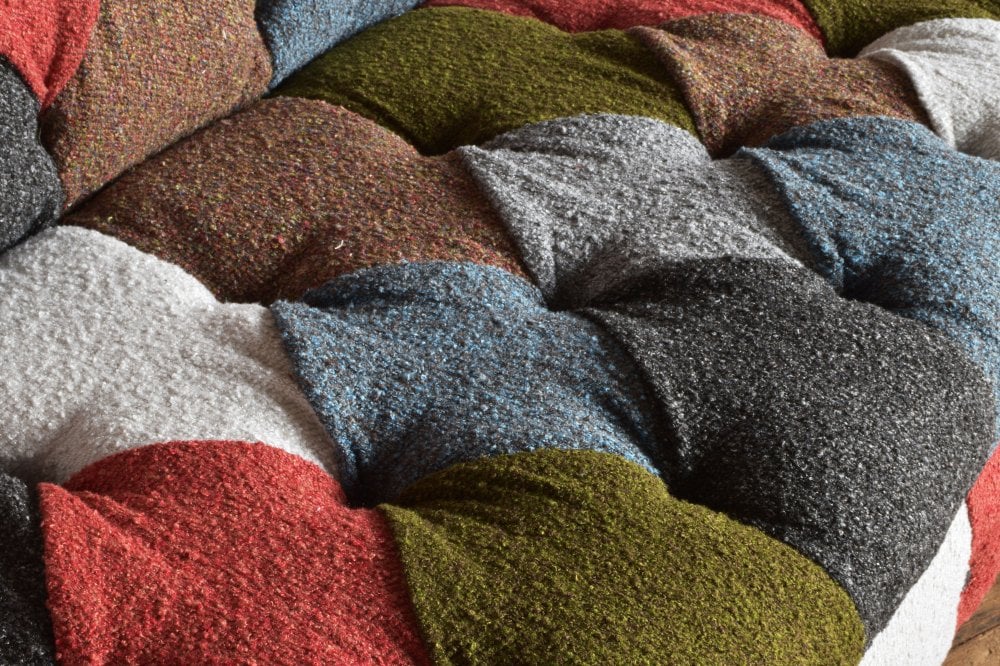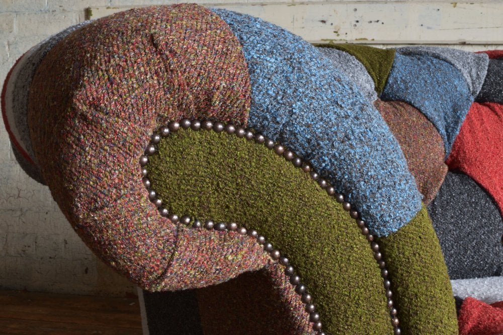 Introducing our 3 Seater Boucle Patchwork Chesterfield Sofa. This Chesterfield Sofa is an artistic infused piece of unique furniture that combines a variety of trendy boucle fabrics and an array of muted and bright plains to create modern piece of furniture.