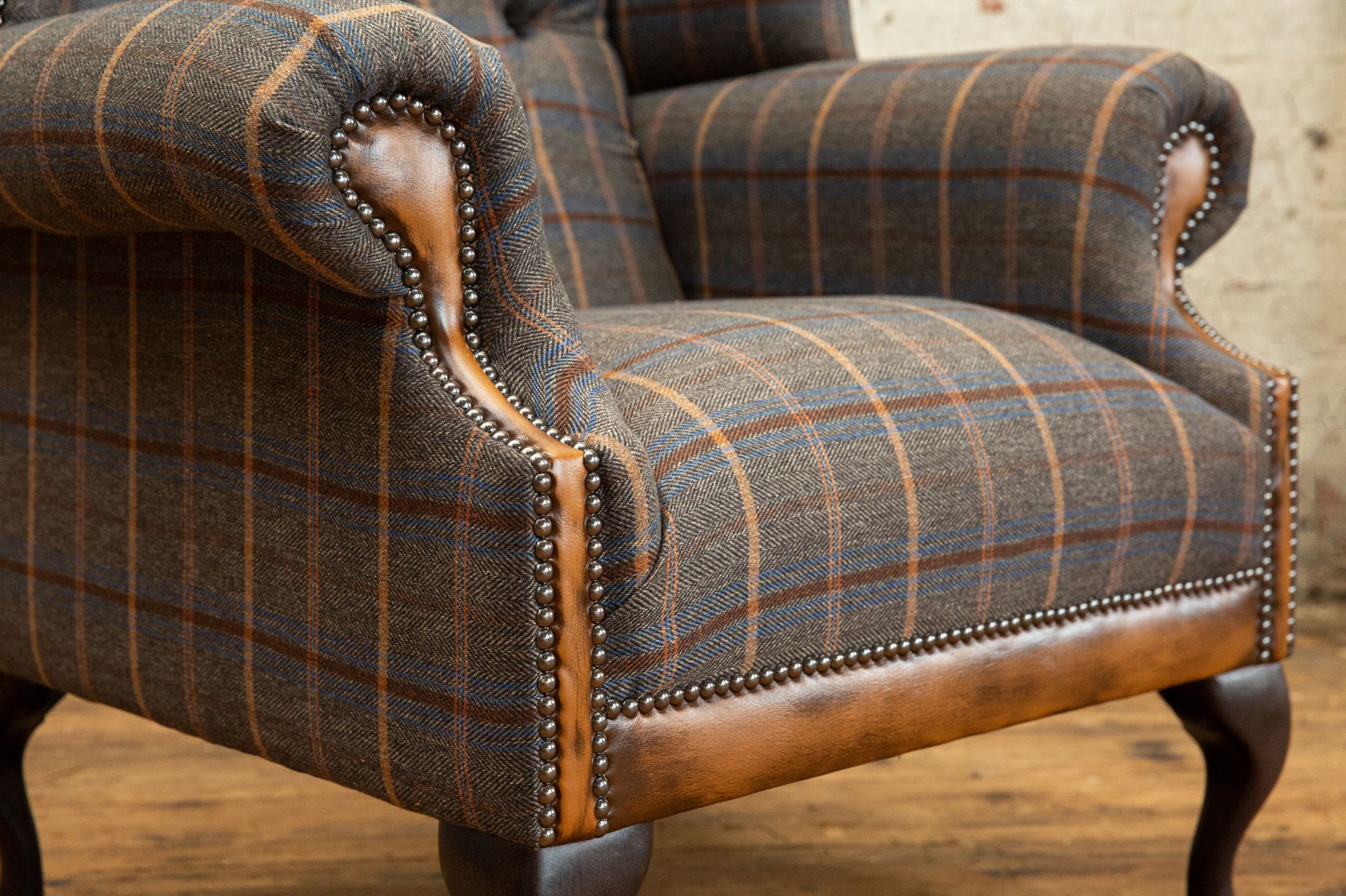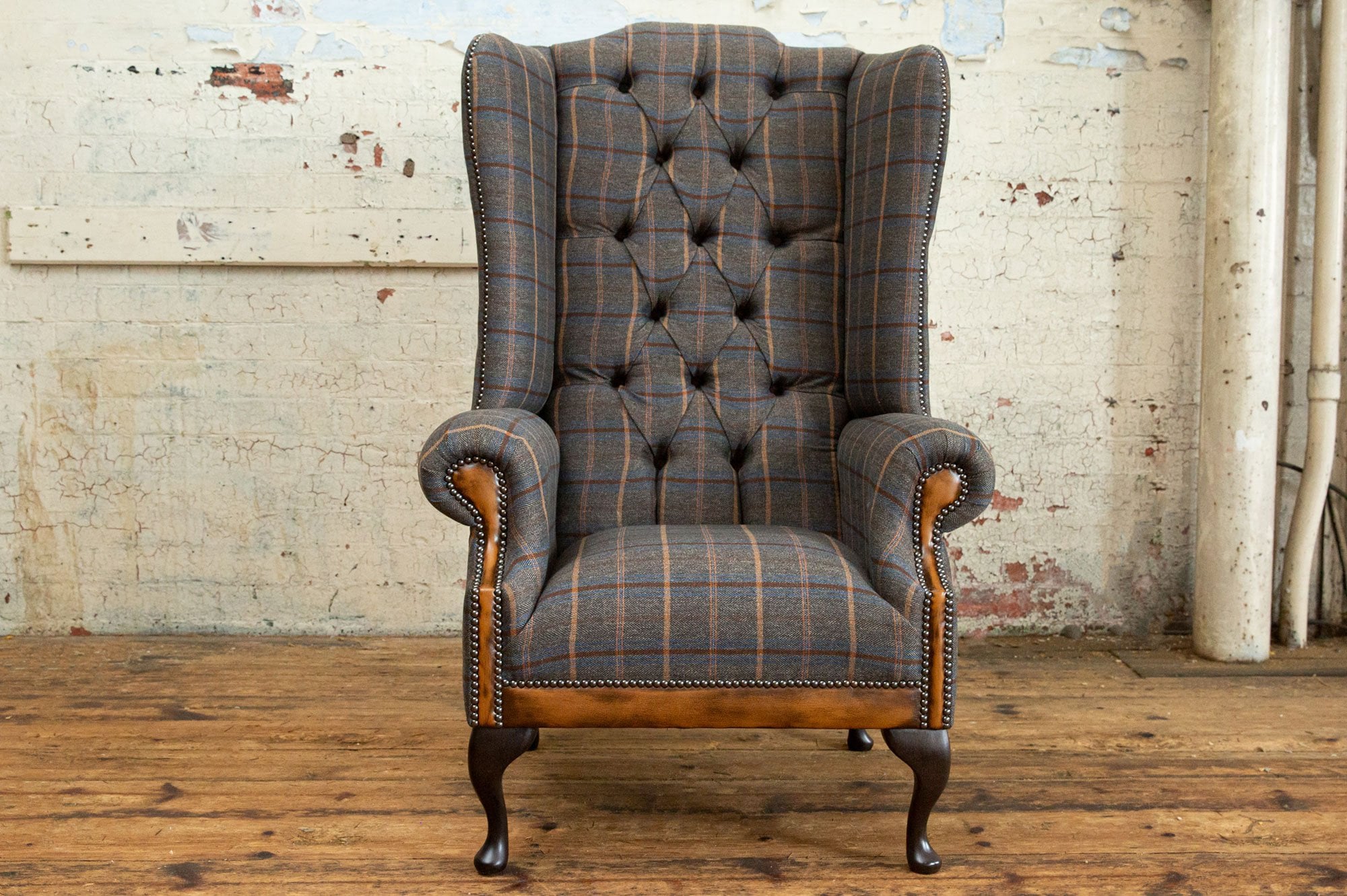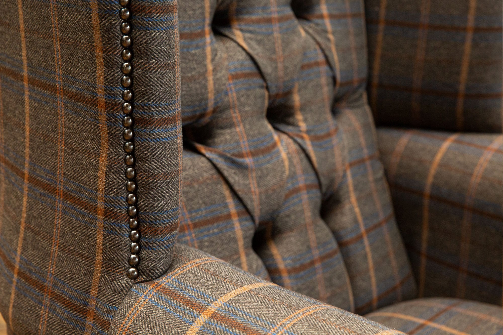 Conrad Chesterfield Wing Chair – Tan Brown Tweed