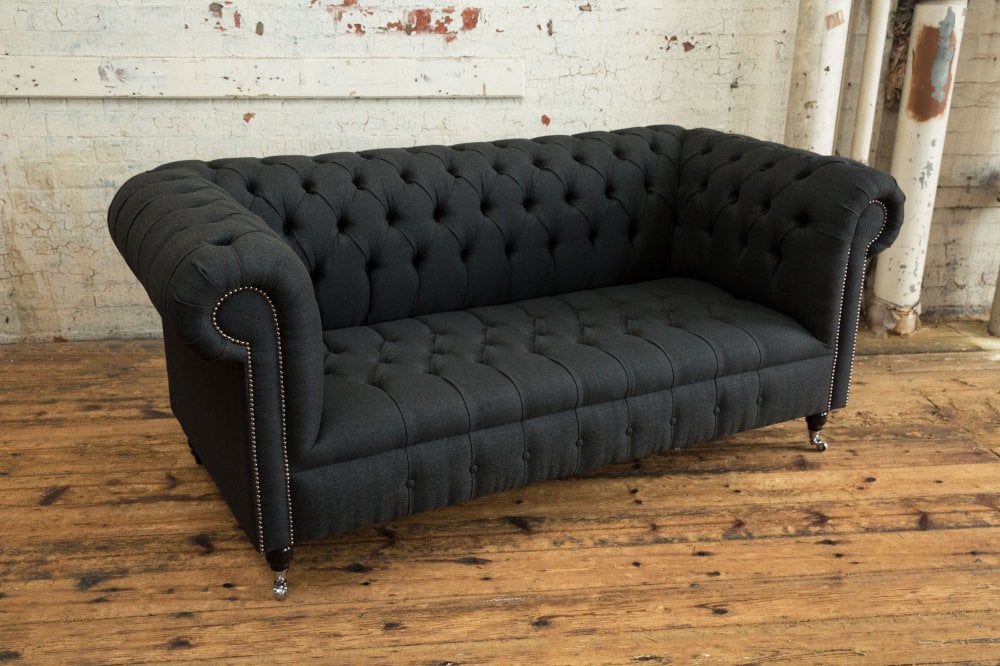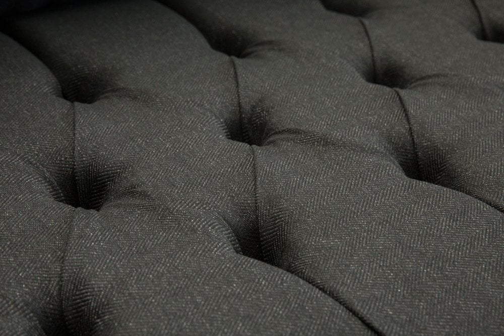Edwardian Chesterfield Sofa – Charcoal Herringbone Wool