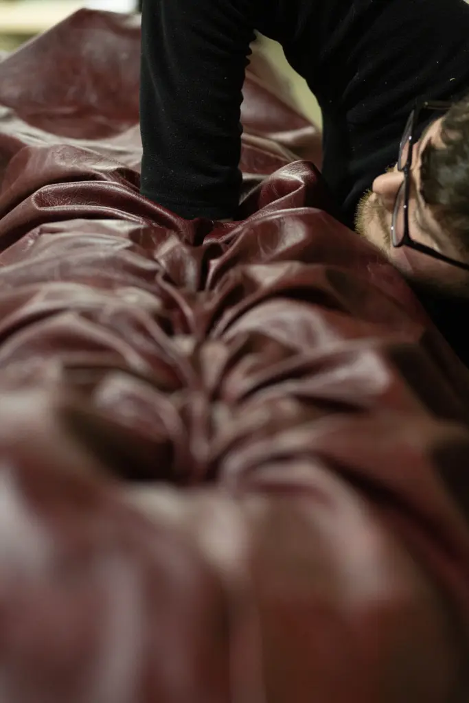 Precision and artistry come together at the upholstery stage. All leathers and fabrics are cut using our advanced CNC cutting technology, where every pattern is digitally stored to ensure absolute accuracy and consistency across the collection. This process allows us to achieve a flawless fit while significantly reducing material waste. Any remaining off-cuts are thoughtfully repurposed into hand-finished swatches for our showrooms.