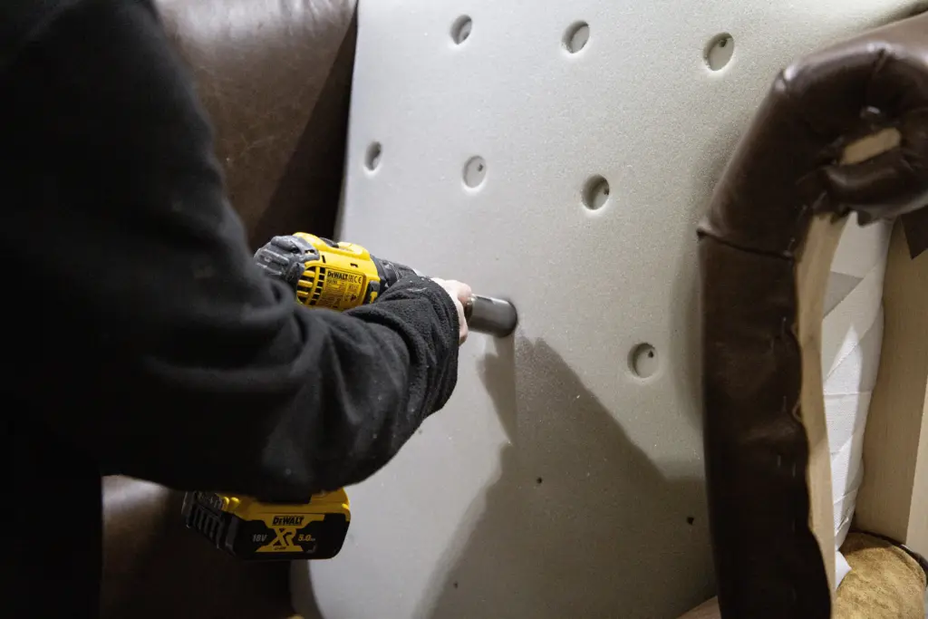 The padding is applied gradually, section by section, allowing our craftspeople to sculpt the form with control and intention. Layer by layer, the piece takes on its final profile—whether the deep curves of a Chesterfield or the clean lines of a contemporary chair.